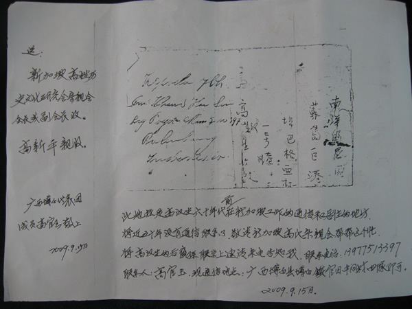 新加坡宗亲来信,有认识的和我们联系