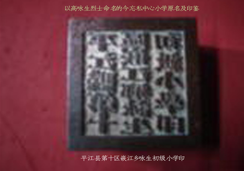 以高咏生烈士命名的今忘私中心小学原名及印鉴