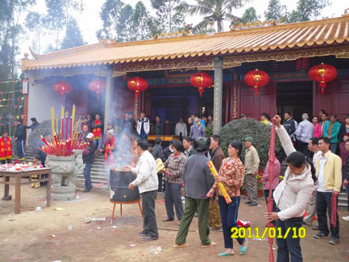 ![]() 参加先祖入祭活动的宗亲向先祖先贤敬香鸣炮。