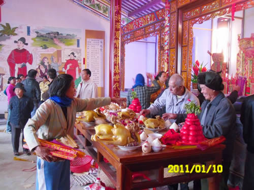 ![]() 发扬氏族传统缅怀先祖先贤,人人争先谒祖敬香。东道主儒教村高氏后裔在正殿内蒙古自治区向先祖先贤奉祭品。