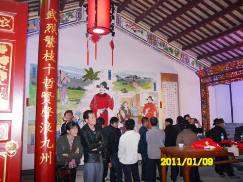 ![]() 一座仿古砖木结构,宗祠正殿集石雕,木雕,壁画,彩绘,彩光于一体的古色古香宗祠正殿引观者眼球。